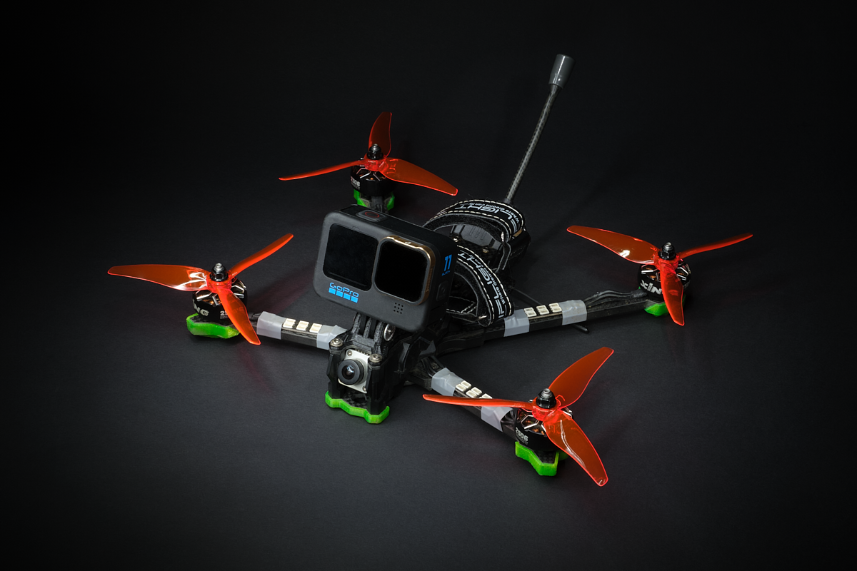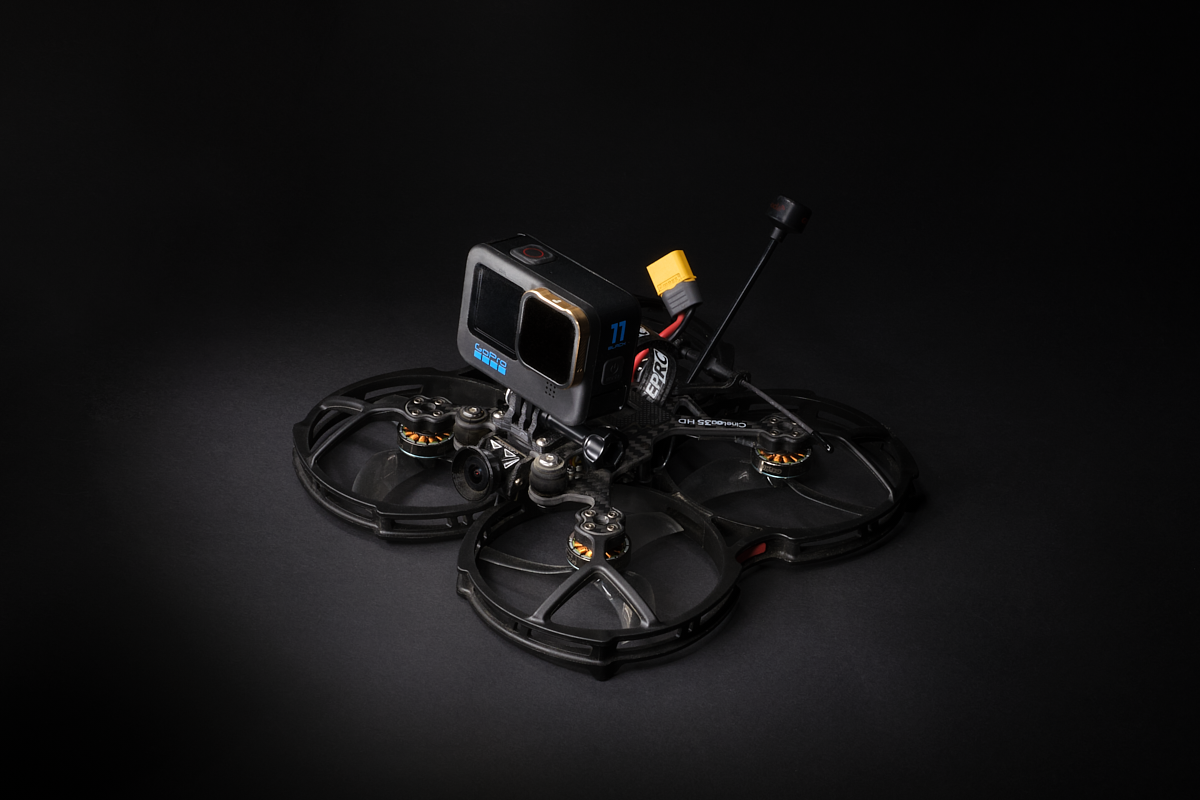 From small cinewhoops carrying a de-cased action camera, to big cinelifter drones for cinema camera systems.
